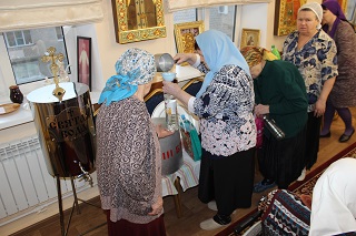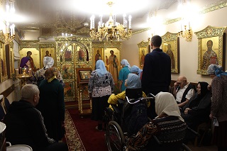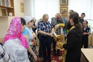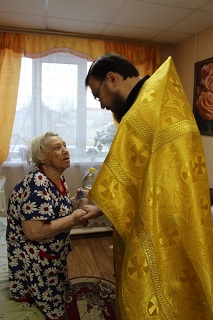 Проживающие, не имеющие возможность передвигаться, тоже не остались без внимания. Сотрудники дома-интерната вместе с отцом Андреем разнесли святую воду по комнатам всем верующим. Батюшка побеседовал с прихожанами и напомнил, как использовать святую воду. Что пить ее следует для укрепления души и тела, особенно в болезни. Вода является целебной, обладает чудодейственными свойствами, помогает укрепить здоровье и забыть о разных недугах. Если человек по какой-то причине не в состоянии выпить воду, можно умыть ею лицо. Прощаясь, святой отец пожелал всем здоровья и крепости духа.