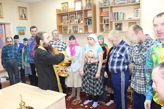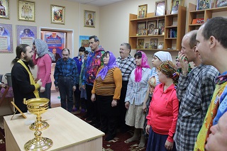 В третьем корпусе дома-интерната в Домовом храме Святой Ксении Петербургской также состоялся Водосвятный молебен, который провел священник Димитрий Попеко. Молодые верующие приняли участие в службе и выпили освященной воды. Накануне ребята узнали много интересного и нового о празднике Крещения или Богоявления. На лекции «Крещение Господне» они просмотрели видеоролики о крещенских обычаях и традициях, прослушали увлекательный рассказ о празднике и с удовольствием вступили в беседу-обсуждение.