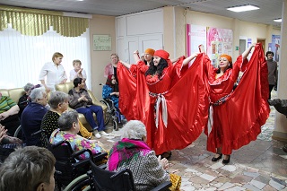 А завершили череду праздничных мероприятий «Крещенские посиделки». Проживающие приняли участие в занимательной игровой программе, фольклорных зимних играх и крещенских гаданиях. А прекрасное настроение проживающим и сотрудникам подарили самодеятельные артисты интерната.