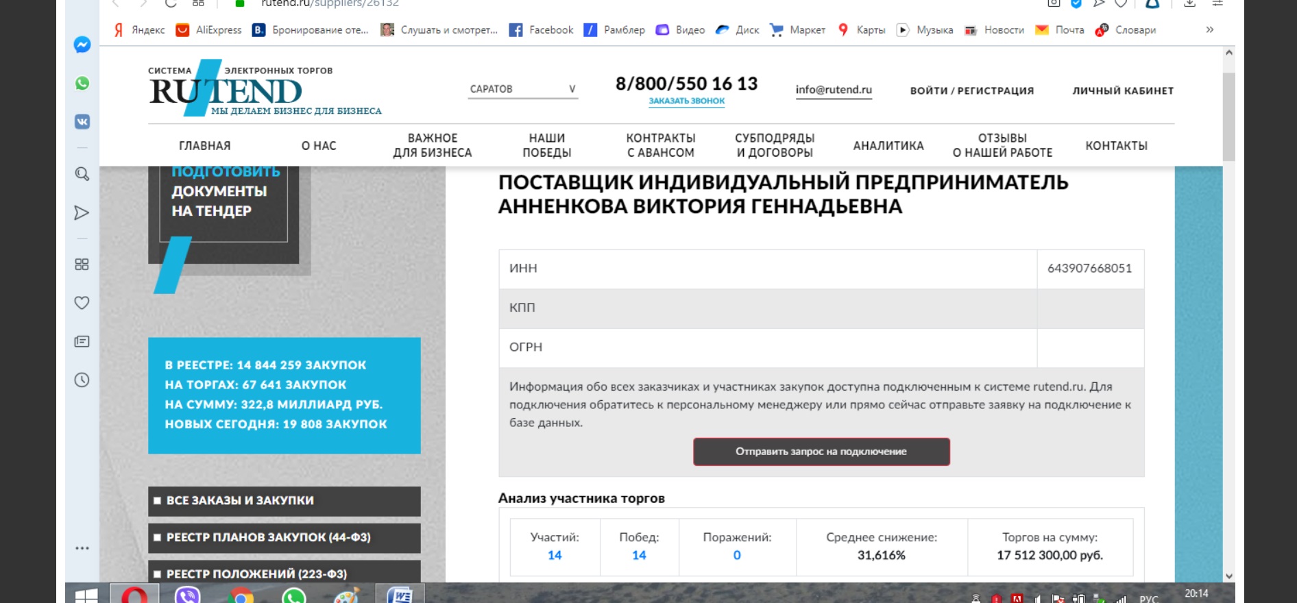 Если вы думаете больнице, что не выделяют денег, то это не так. Выделяют и выделяют в полном объеме, вот только куда они тратятся? Так на очередном аукционе по закупке привозного питания в энгельсской городской больнице №1 , проведенном 13 января 2020 года, начальная цена составила 2 465 702, 67 рублей. В процессе аукциона, доктор юридических наук, профессор, ректор Поволжского кооперативного института Анненкова В.Г. выиграла его за 275 тысяч рублей в месяц! То есть, при начальной стоимости 245 рублей за шестиразовое питание на одного человека в день, профессор готова кормить больных за 26,8 рублей шесть раз в день! Наверняка, профессор Анненкова подведет под это научное обоснование и несколько математических формул, которые мне грешному и министру здравоохранения Мазиной Н.В. не известны. Но судя по всему, и это для Анненковой не проблема. Доктор юридических наук, профессор, ректор Поволжского кооперативного института Аненкова В.Г. знает секретную научную формулу, граничащую с волшебством (или мошенничеством?), как постоянно выигрывать. И ведь выигрывает же! На сайте системы rutend.ru размещена такая информация о поставщике Индивидуальном предпринимателе Анненковой Виктории Геннадьевне: из 14 участий в аукционах - 14 побед и ни одного поражения. И все эти победы связаны с энгельсской городской больницей №1. Наверняка, зашедший на сайт владелец любого казино профессора Анненкову В.Г. в свое заведение никогда не допустит. А и не надо, ведь есть же энгельсская городская больница №1!!!