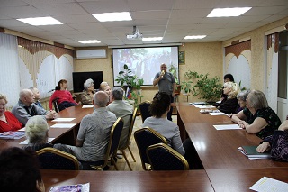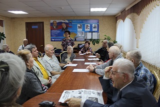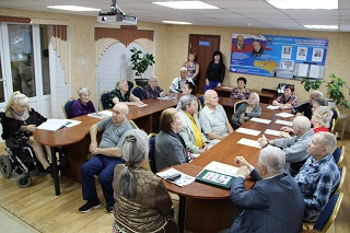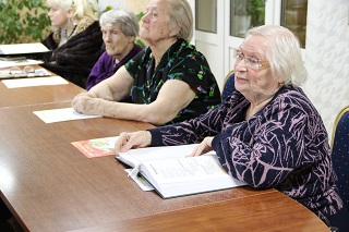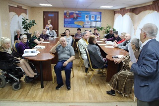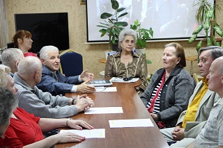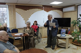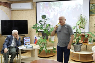 В теплой дружеской атмосфере собравшиеся обсуждали своевременность и актуальность подобного сборника. Проживающие дома-интерната, соавторы произведения – Людмила Викторовна Лоскутова и Марина Юрьевна Кочеткова читали стихи современных поэтов и собственного сочинения. Особую атмосферу в самом начале встречи придало талантливое выступление Геннадия Васильевича Рогова, исполнившего проникновенную песню – гимн погибшим воинам – «Журавли».