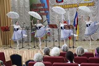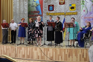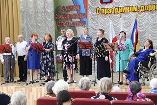 В творческом порыве молодежь поддержали проживающие Энгельсского дома-интерната. Вокальный коллектив «Надежда» исполнил горячо любимые произведения советской эстрады, близкие всем задушевные народные песни, музыкальные композиции о Родине и любви к России. В этом году к составу творческого коллектива присоединилась Зоя Харченко. Талантливая девушка, писательница, прикованная в силу заболевания к креслу-коляске, теперь не только танцует, но и поет. Продолжительные аплодисменты зрителей заслужили сольные выступления самодеятельных певцов – Геннадия Рогова и Тамары Босенко. Собственные стихи читала Ольга Круглова, посвятившая их памятной юбилейной годовщине – 75-летию Победы в Великой Отечественной войне.