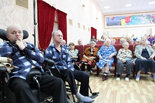 В награду за свои выступления артисты получили долгие дружные аплодисменты зрителей и сладкие подарки от директора дома-интерната Сергея Владимировича Сафошкина.