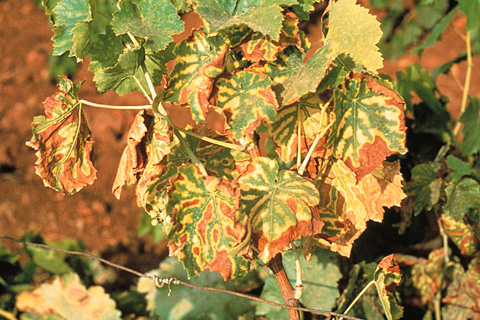 Недостаток фосфора легко обнаруживается на томатах, кукурузе, озимой ржи, корнеплодах, груше, яблоне, крыжовнике.Недостаток калия проявляется путем образования на пластинках листьев бурых пятен, которые появляются вначале в периферической части листа, а центральная часть жилок остается зеленой. При этом листовые пластинки и сосудистая система развиваются неравномерно, что приводит к деформации листьев. Старые листья в деформированном виде отмирают и опадают, в то время как молодые остаются зелеными.