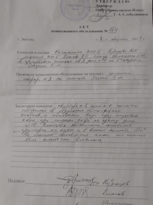 Добрый день, Михаил Александрович! Вам пишут жильцы дома по адесу: р.п.Приволжский, кв-л.ст Анисовка 3-й, д.10, кв.8. В нашем доме протекает крыша в подъезде и в квартире у жильцов этого дома. В квартире, после зимы, был сделан ремонт потолка, но после ливня, что прошел 2 недели назад, потолок снова потек... и в подъезде, и в квартире. Штукатурка начинает отваливаться, а ведь есть дети, внуки. Мы переживаем, что может это все упасть на голову. Мы обращались в районную администрацию: были составлены акты, но ситуация не разрешается. Пожалуйста, помогите нам в решении данного вопроса. Конечно, с крышами всегда есть проблемы, но их же решают в других домах и организациях. Мы ОЧЕНЬ надеемся на то, что ситуация сдвинется с мертвой точки (фото прилагаем). Благодарим.