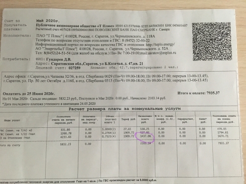НАМ НАЧИСЛИИ ОТОПЛЕНИЕ ЗА МАЙ 2020г. по адресу г. Саратов ул. Б.Казачья, д.47, кв. 21. общая площадь 42.7 кв.м. Сумма начиисления составила за май месяц 1437 руб 06 коп. Просим произвести перерасчёт!!!!!