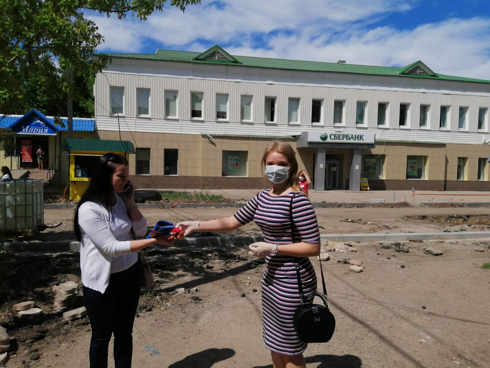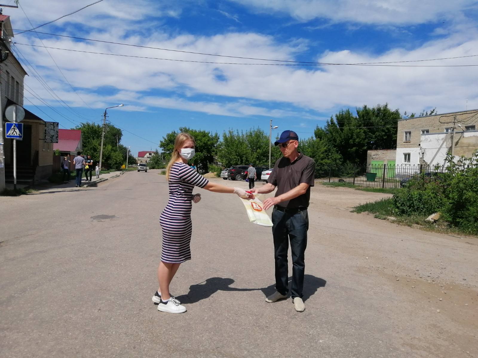 Волонтёры раздавали горожанам значки "Красная гвоздика", как символ памяти павшим героям и благодарности ныне живущим ветеранам, которые сражались за наше Отечество.
