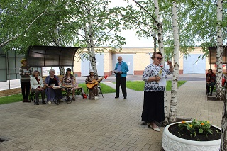 Сегодня, 24 июня, проживающие и сотрудники дома-интерната, находящиеся на карантинном режиме, присоединились к всеобщему Параду Победы. С раннего утра на изолированной территории дома-интерната звучали песни военных лет. Патриотически настроенные сотрудники прошли стройными рядами Бессмертного полка по территории учреждения. Перед главным входом в здание 1-го корпуса силами сотрудников и проживающих прошел небольшой концерт, который все желающие могли посмотреть из окон.