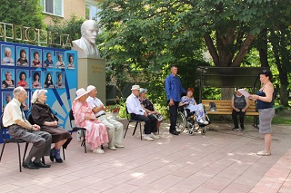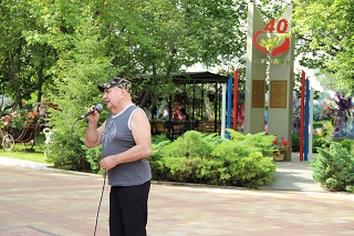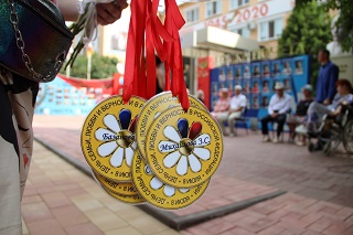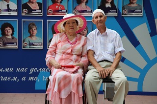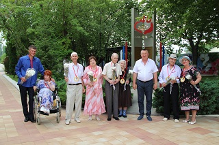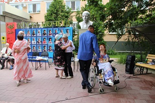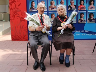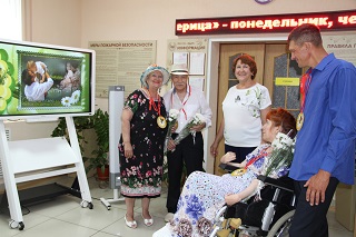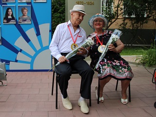 Расположившись на свежем воздухе, супружеские пары приняли участие в веселой викторине, с удовольствием пели лирические песни вместе с вокалистом Геннадием Роговым – проживающим интерната, кружились в ритме легкого вальса. В подарок супруги получили символические семейные медали и букеты ромашек – символа праздника.