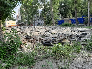 В настоящее время на месте снесенного дома в центре Заводского района, рядом с налоговой инспекцией, образовалась огромная помойка (фото прилагаю) и свалка строительного мусора.