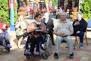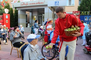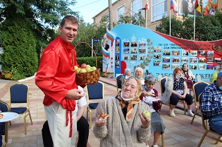 14 августа с самого утра проживающие Энгельсского дома-интерната почувствовали особое праздничное настроение. На большой интерактивной панели, установленной в центральном холле, транслировались тематические ролики и звучала веселая музыка. На внутреннем радио учреждения прошла радио рубрика «Медовый Спас - православный праздник трех святынь» об истории и традициях праздника.