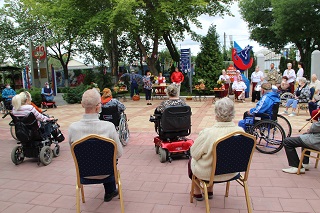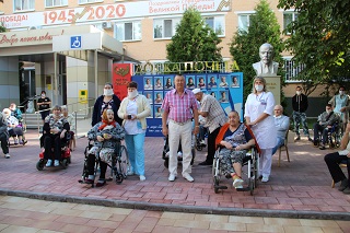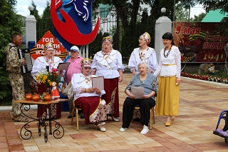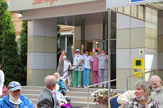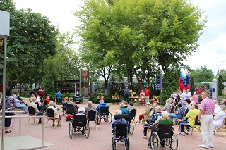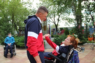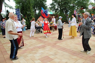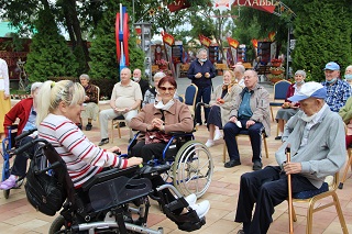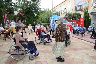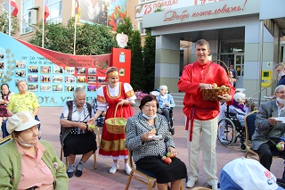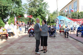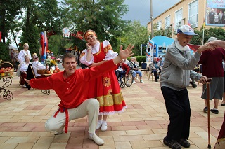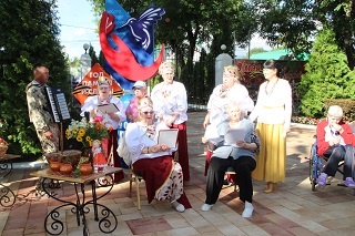 Веселье и хорошее настроение всем подарили народные песни под переливы баяна в исполнении самодеятельных артистов учреждения из числа сотрудников и проживающих. Праздник получился настолько радостным, что многие не удержались и пустились в пляс. Даже маломобильные граждане, передвигающиеся в колясках, легко вальсировали по импровизированной танцевальной площадке.