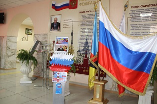 С самого утра проживающие Энгельсского дома-интерната почувствовали особое праздничное настроение. На большой интерактивной панели, установленной в центральном холле, транслировались тематические ролики и звучали патриотические музыкальные произведения. На внутреннем радиоузле прошел выпуск радиогазеты «Единый флаг – единая Россия» об истории принятия Российского флага, о значении триколора. Ведь каждый из трех цветов флага, имеет официальное толкование. Красный цвет означал "державность", синий — цвет Богоматери, под покровом которой находится Россия, белый — цвет свободы и независимости.