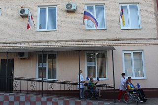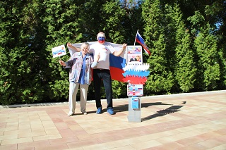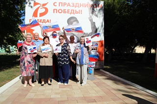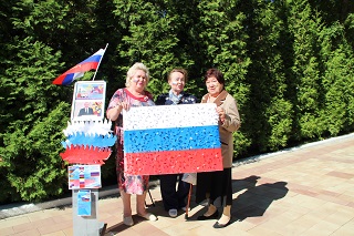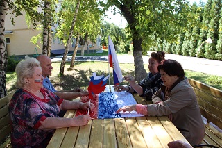 На благоустроенной территории дома-интерната развернулась работа фотозоны «Белый, синий, красный цвет – символ славы и побед!». Любой желающий мог не только сфотографироваться на фоне Государственного флага России, но и принять участие в создании триколора.