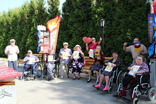На благоустроенной территории дома-интерната развернулись основные праздничные мероприятия. В уютной тенистой березовой аллее вокальный коллектив «Надежда» исполнил горячо любимые произведения советской эстрады, близкие всем задушевные народные песни, музыкальные композиции о любви к родному краю. Некоторые проживающие прочитали стихотворения современных поэтов и собственного сочинения, посвященные 75-летию Победы в Великой Отечественной войне. Конечно, зрители не остались равнодушными, они поддерживали самодеятельных артистов громкими аплодисментами. От избытка эмоций им сложно было усидеть на своих местах, и они начинали танцевать.