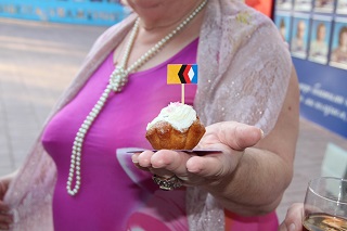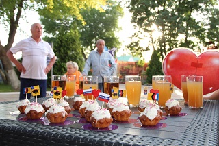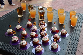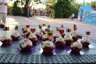В завершении дня настоящим незабываемым подарком для проживающих Энгельсского дома-интерната стал праздничный фуршет. Главным угощением на столе были кондитерские изделия, украшенные взбитыми сливками с оригинальными элементами - символами города.