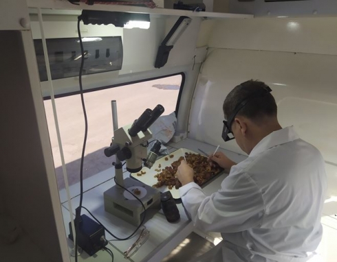 Для своевременного принятия инспекторами Управления Россельхознадзора по Саратовской области мер в отношении подкарантинной продукции, поступающей в Российскую Федерацию с территории Казахстана на ФКП «Озинки», с 1 июня 2020 года ФГБУ «Саратовская МВЛ» организована работа передвижной лаборатории. Лаборатория оснащена оборудованием для проведения лабораторных экспертиз с выдачей Заключения о карантинном фитосанитарном состоянии подкарантинной продукции. Через данный участок границы поступает продукция происхождением Р. Казахстан, Р. Узбекистан, Р. Кыргызстан (сухофрукты, дыни, фасоль, нектарины, сливы и т.д.). За время работы лаборатории в рамках исполнения плана государственного задания были выявлены следующие карантинные объекты: насекомое семейства щитовок калифорнийская щитовка (Quadraspidiotus perniciosus) в партии сливы и абрикосов происхождением Р. Казахстан. Вредитель сельского хозяйства, повреждает около 270 видов растений из 85 семейств, основные повреждаемые культуры: яблоня, груша, абрикос, айва; восточная плодожорка ( Grapholita molesta) — бабочка из семейства Листовёртки в партии нектаринов происхождением Р. Узбекистан. Вредитель плодовых культур, поражающий плоды и молодые побеги различных розоцветных культур. К повреждаемым культурам относятся: персик (предпочитаются), айва, грушa, сливa, абрикос, яблоня, мушмула, кизильник.