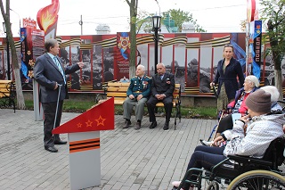 С теплыми словами поздравлений Сергей Владимирович обратился ко всем зрителям: «Уважаемые наши ветераны, люди почетного возраста! - сегодня мы чествуем вас, людей, которые могут многое рассказать и всему научить. Людей, чьи благородные седины означают не только возраст, но и безграничную мудрость, бесценный опыт и большие познания. Желаем вам бесконечно долгих и счастливых лет, наполненных здоровьем, покоем, счастьем и заботой. Желаем, чтобы, не смотря на возраст, ваша душа всегда оставалась молодой и энергичной. С Днем пожилого человека!»