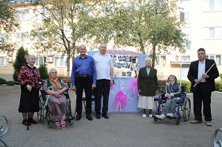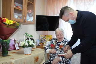 Самые теплые слова и поздравления прозвучали в адрес двух проживающих, Анны Александровны Ждановой и Валентины Алексеевны Уваровой, празднующих в этот день свои дни рождения. Анна Александровна, ветеран Великой Отечественной войны, является старейшей жительницей дома-интерната – ей исполнилось 98 лет. «Серебряный» возраст Валентины Алексеевны составляет 79 лет. Директор Энгельсского дома-интерната Сергей Владимирович Сафошкин поздравил долгожительниц с двойным праздником, вручил цветы и подарки.