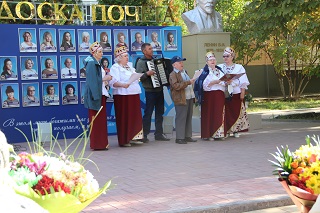 В березовой роще уютно расположились почитатели таланта народного артиста РСФСР, композитора, пианиста, певца, актера, скрипача, Владимира Яковлевича Шаинского. На веселых и озорных песнях маэстро воспитано не одно поколение детей, созданные им военные песни пропитаны патриотизмом и любовью к родной стране, ежедневно на экранах телевизоров можно увидеть фильмы с участием Владимира Яковлевича, услышать музыку, написанную к художественным и мультипликационным фильмам. Проживающие дома-интерната с удовольствием вспомнили такие песни, как «От улыбки станет всем светлей…», «Идет солдат по городу…», «Не плачь, девчонка!» и другие. В этом году исполнилось 95 лет со дня рождения талантливого музыканта и актера.