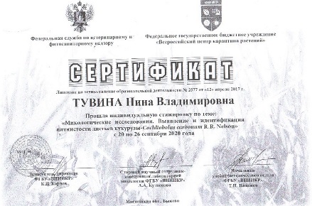 Специалист филиала ФГБУ «Саратовская МВЛ» в Республике Мордовия с прошла индивидуальную стажировку на базе ФГБУ «Всероссийский центр карантина растений» в г. Москва, по теме: «Микологические исследования. Выявления и идентификация пятнистости листьев кукурузы - Cochliobolus carbonum R.R. Nelson».