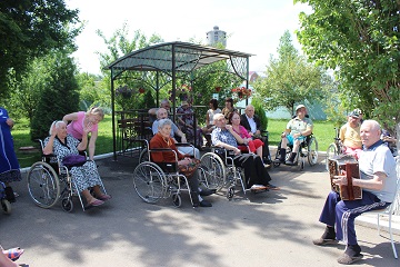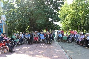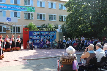 Утро выдалось ясное, свежее и очень солнечное. Первые, еще не очень горячие лучи пробивались сквозь ветки деревьев и осветили все вокруг. Проживающие дома-интерната с удовольствием вышли на улицу в ожидании выступления народного коллектива. Артисты самодеятельного коллектива исполняли всем известные народные песни и частушки. Своим выступлением ансамбль внес много позитива и радостного настроения. Проживающие даже по окончании концерта не хотели расходиться и устроили свои выступления. Тут же гармонист Владимир Федорович вынес на улицу свою гармонь, и полились песни и пляски самих проживающих.