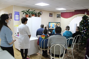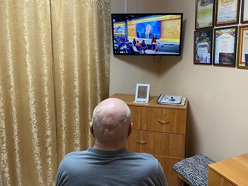 Все желающие могли следить за ходом конференции, расположившись у экранов телевизоров в зонах отдыха, холлах отделений, на большом экране в вестибюле 1 этажа. Любители уединения и проживающие, ограниченные в передвижении, включили телевизоры в собственных комнатах. Все с огромным интересом слушали Президента и всем хотелось задать свой вопрос.