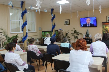 17 декабря послушать пресс-конференцию Владимира Владимировича Путина у экранов телевизоров собрались все проживающие и сотрудники всех трех корпусов Энгельсского дома-интерната.