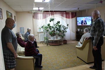 Выступления президента всегда вызывают огромный интерес у проживающих дома-интерната. Вот и в этот день, ни у кого не возникло разногласий по поводу того, какой смотреть телеканал.