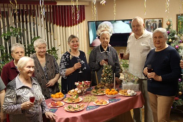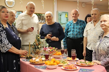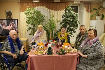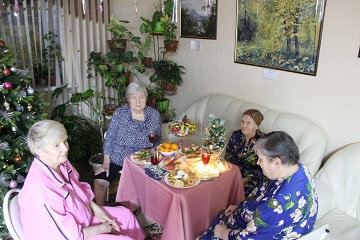 Сказочные зимние праздники в Энгельсском доме-интернате проходили весело и дружно. Новогодним вечером состоялся конкурс «Самый семейный новогодний стол». В отделениях проживающие накрыли праздничные столы. Каждый старался украсить свой стол новогодней атрибутикой оригинально и празднично. В ход пошли гирлянды, свечи, елочные композиции. В этом конкурсе не было проигравших - подопечные интерната отлично провели время в кругу друзей, пообщались и повеселились, вспоминали поздравления Дедушки Мороза и Снегурочки, и желали друг другу здоровья и процветания в наступающем году.