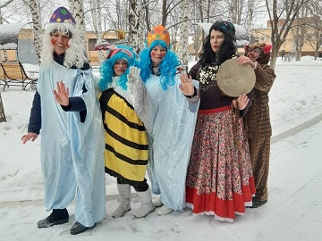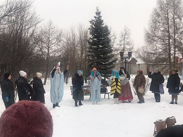 Во 2 корпусе праздничное представление состоялось на улице – сказочные персонажи водили хоровод, пели колядки, частушки, отгадывали загадки.