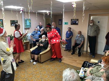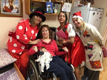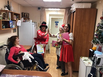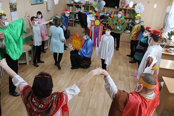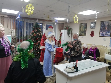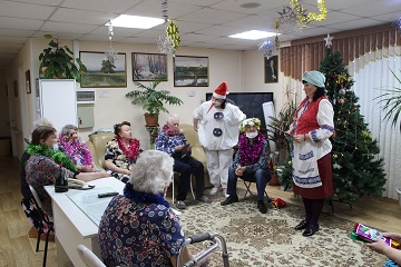 По всем отделениям 1 корпуса прошли веселые скоморохи, они показали интерактивное мини представление об истории святочных праздников. Не остались без внимания немобильные и маломобильные граждане, они с удовольствием играли с ряжеными в своих комнатах.
