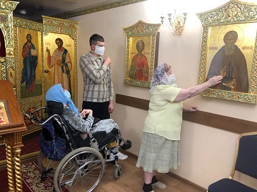 Наступления Рождества пожилые люди ждут с особым трепетом, это светлый и радостный праздник для всех, кто чтит православные традиции. С самого утра в домовом Храме во имя великомученика Пантелеймона постоянные прихожане, малыми группами, соблюдая карантинный режим, получили возможность поставить свечи и помолиться о здравии своих близких.