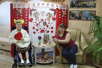 В день 14 февраля сотрудники дома-интерната подготовили для своих проживающих необычный сюрприз – оформили яркую фотозону для фотосессии «Я тебя люблю!». Сфотографироваться в таком красивом месте захотели даже те, кто не имеет пары.