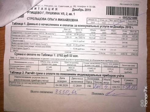При повышения тарифа на 1, 94% плата в декабре 2020 года выросла от 45 до 69% по сравнению с платой за декабрь 2019 года.