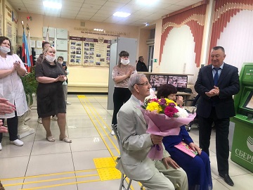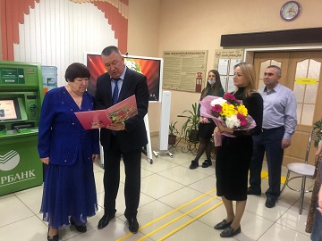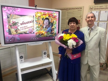 Поздравительную церемонию начал руководитель учреждения - Сергей Владимирович Сафошкин. Он сказал теплую душевную речь и отметил молодость души Любовь Владимировны. После сердечных поздравлений руководитель вручил юбилярше поздравительный адрес, букет цветов и памятный подарок. Изюминкой поздравления стала музыкальная видео-презентация с фотографиями из жизни виновницы торжества. Любовь Владимировна не могла сдержать эмоций, слезы радости появились на глазах от воспоминаний счастливых моментов своей жизни.