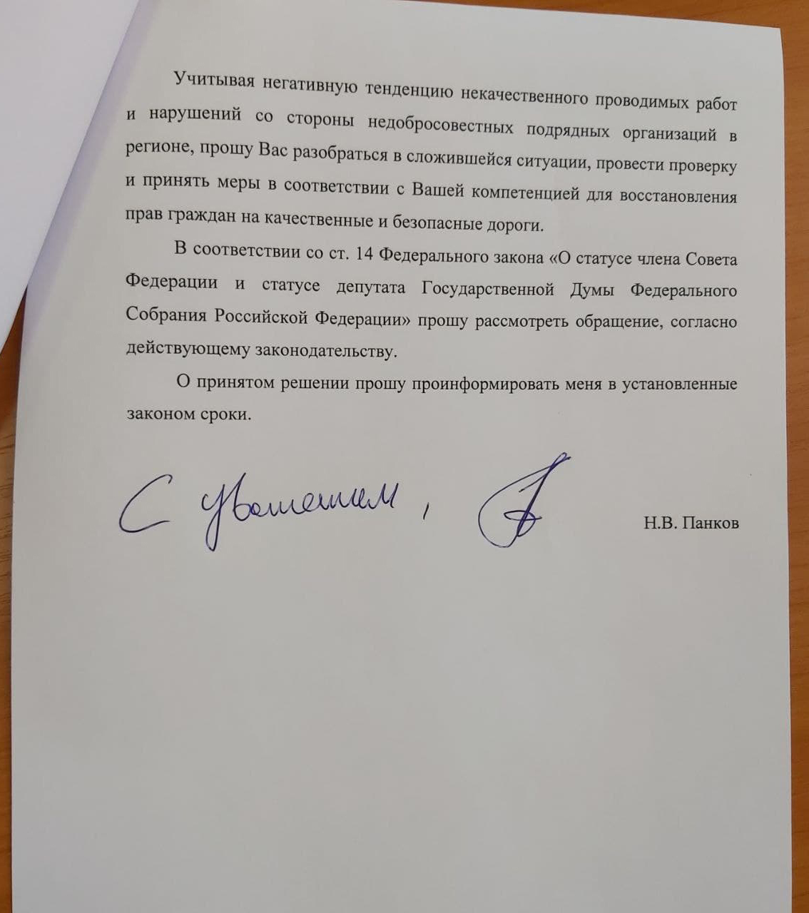 Депутат Государственной Думы Николай Панков обратился в прокуратуру области с просьбой провести проверку подрядной организации, допустившей некачественный ремонт ул. Комарова в Балаково. Об этом он рассказал в своем телеграм-канале «Пара слов».