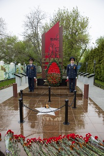 · церемония возложения цветов и памятного венка к Вечному огню на Аллее Славы Энгельсского дома-интерната для престарелых и инвалидов и минута молчания;