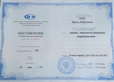 В период с 24 мая по 25 мая 2021 года в Учебном центре подведомственного Россельхознадзору ФГБУ ЦНМВЛ, г. Москва, ветеринарный врач отдела бактериологии, паразитологии и микологии Рудой И.А. прошла обучение по теме: «Работа с эталонными штаммами микроорганизмов».