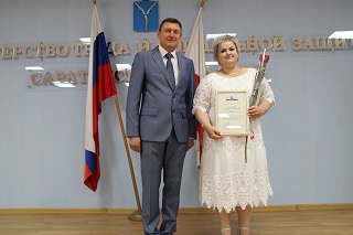 Среди лучших работников министерства и учреждений социального обслуживания населения, внесших большой вклад в развитие социального обеспечения населения, удостоенных почетной награды - врач-терапевт Энгельсского дома-интерната Наталья Геннадьевна Чеканова.