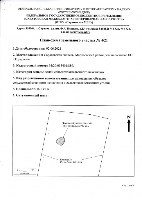В соответствии с обращениями Управления Россельхознадзора по Саратовской и Самарской областям в июне 2021 года отделом инспекции ФГБУ «Саратовская МВЛ» проведено геодезическое обследование 3-х земельных участков, расположенных на территории Марксовского, Лысогорского и Саратовского районов Саратовской области.