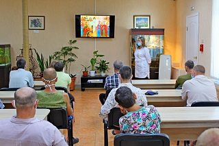 Отдельные теплые поздравления достались супружеским парам, проживающим в учреждении. В течение последних лет в учреждении проживало 39 супружеских пар, в том числе у 31й пары отношения сложились именно в доме-интернате. Старейшие супруги – Анатолий Васильевич и Мария Михайловна Шипулины в этом году отметили сапфировую свадьбу. А Самая молодая пара – Алексей и Зоя Михайловы - три года назад поженились и прошли таинство венчания в стенах учреждения.