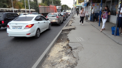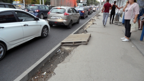 Скажите - куда у вас смотрит администрация Кировского района во главе с Пелепенко? Почему это многочисленная администрация не контролирует, что у них творится в районе? Может им на все наплевать, и им все равно, что горожане при выходе из общественного транспорта с детьми вынуждены совершать акробатические упражнения, перепрыгивая через незасыпанную канаву? Разве сложно засыпать эту яму хотя бы грунтом или щебенкой напротив остановки? Что за глава в Кировском районе у вас такой безразличный?