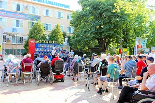 27 августа на импровизированной концертной площадке перед зданием первого корпуса проживающие и сотрудники собрались для участия в празднике «Прощай, лето!», подготовленном самодеятельными артистами дома-интерната.