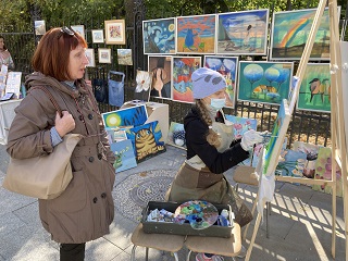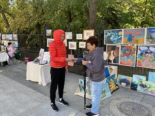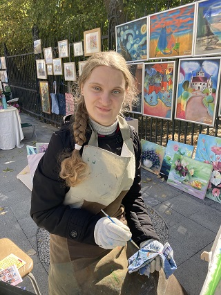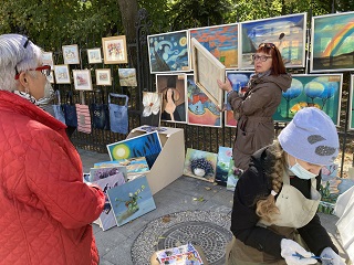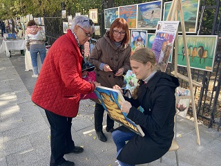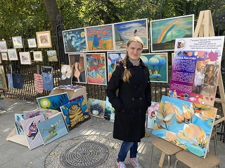 В минувшие выходные в Саратове развернулись празднования в честь 431–ой годовщины со дня основания города. В рамках праздничных мероприятий на Волжской улице расположилась большая ярмарка мастеров и художников, которая объединила на одной площадке всех неравнодушных к творчеству людей не только Саратовской области, но даже из других стран. Молодая художница, проживающая в Энгельсском доме-интернате, с удовольствием приняла участие в ярмарке и представила зрителям свои произведения.