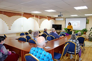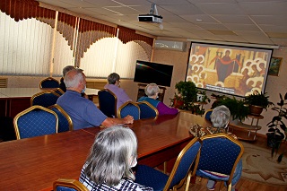 После праздничного обеда желающие собрались в уютном читальном зале учреждения, оснащенном современным видео оборудованием, для просмотра документального фильма «Под Покровом Пресвятой Богородицы». По окончании, проживающие обсудили увиденное и поделись собственными мнениями.