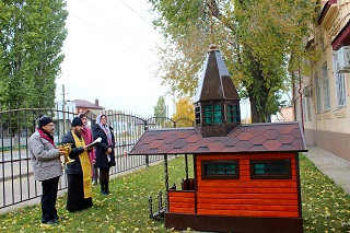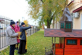 В этот день в 3м корпусе дома-интерната молодые инвалиды встречали настоятеля Храма в честь успения Пресвятой Богородицы г. Покровска иерея Димитрия Попеко, который рассказал об истории празднования Покрова Пресвятой Владычицы нашей Богородицы. После праздничной службы священнослужитель провел освящение миниатюрной часовни, изготовленной ребятами, посещающими мастерские «Город мастеров» и «Живое дерево», и украсившей благоустроенную территорию корпуса.