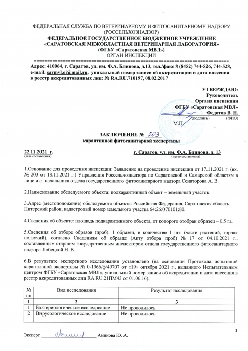 В результате проведения указанных инспекций были подготовлены 55 заключений, направленные в Управление Россельхознадзора по Саратовской и Самарской областям.