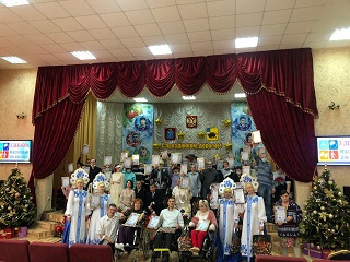 2 декабря в уютном актовом зале главного корпуса учреждения собрались проживающие всех трех корпусов для участия в праздничной программе «День добра». Перед концертом сотрудники и их подопечные смогли ознакомиться с творчеством своих талантливых друзей: интерьерными текстильными куклами, изготовленными мастерицами швейной мастерской «Умелица»; кованными изделиями созданными молодыми инвалидами слесарной мастерской «Город мастеров» и полюбоваться великолепными картинами художницы Марины Кочетковой.