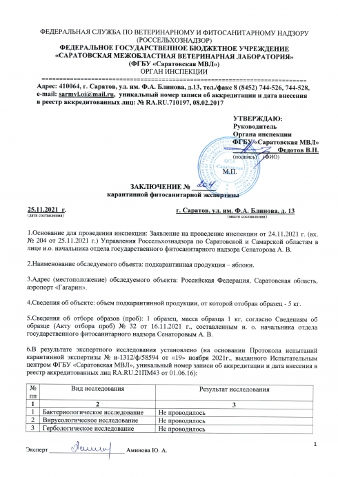 На основании обращений Управления Россельхознадзора по Саратовской и Самарской областям в ноябре 2021 года Органом инспекции ФГБУ «Саратовская МВЛ» проведено 5 инспекций в виде карантинных фитосанитарных экспертиз.